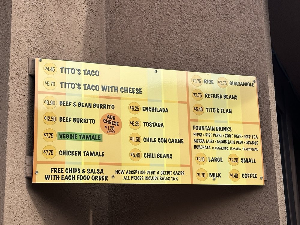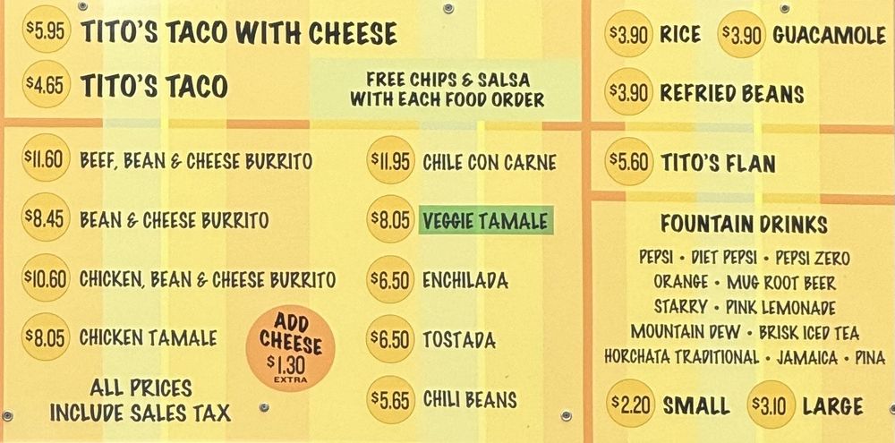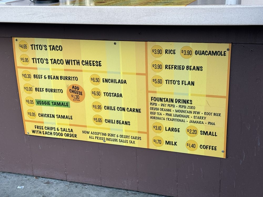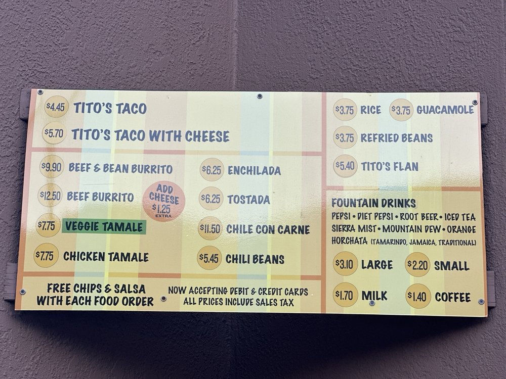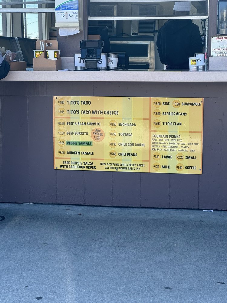 Tito’s Tacos, located in Culver City, CA, offers a variety of Mexican dishes like Tacos, Burritos, and more. The menu includes options like Tito’s Taco with shredded beef, cheese, and lettuce in a corn shell, and a Bean Burrito filled with refried beans. Customers have praised the delicious food, especially the crunchy tacos and bean cheese burrito. Despite some negative reviews about service, the quick and efficient service has also been noted by customers. The restaurant has a nostalgic vibe and is a classic spot in Los Angeles for no-frills, traditional tacos. The limited menu ensures a focus on quality and consistency in their offerings. Overall, Tito’s Tacos provides a simple yet delicious dining experience, making it a must-visit for those craving authentic Mexican fare.